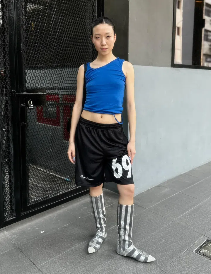 Her style inspo: "My friends. I’m surrounded by a lot of talented and inspirational individuals who create their own unique works. From music and accessories to metalwork, tattoos, and even unconventional items like dildos, clay, and silk screens. They have been a great source of motivation for me to explore my own sense of individuality, beyond just clothing myself. Recently, I've also received comments that I dress like Madonna from the early 2000s, either heading to or coming from the gym. It’s something that happens naturally, perhaps ingrained in my subconscious. In a way, I do see a parallel."