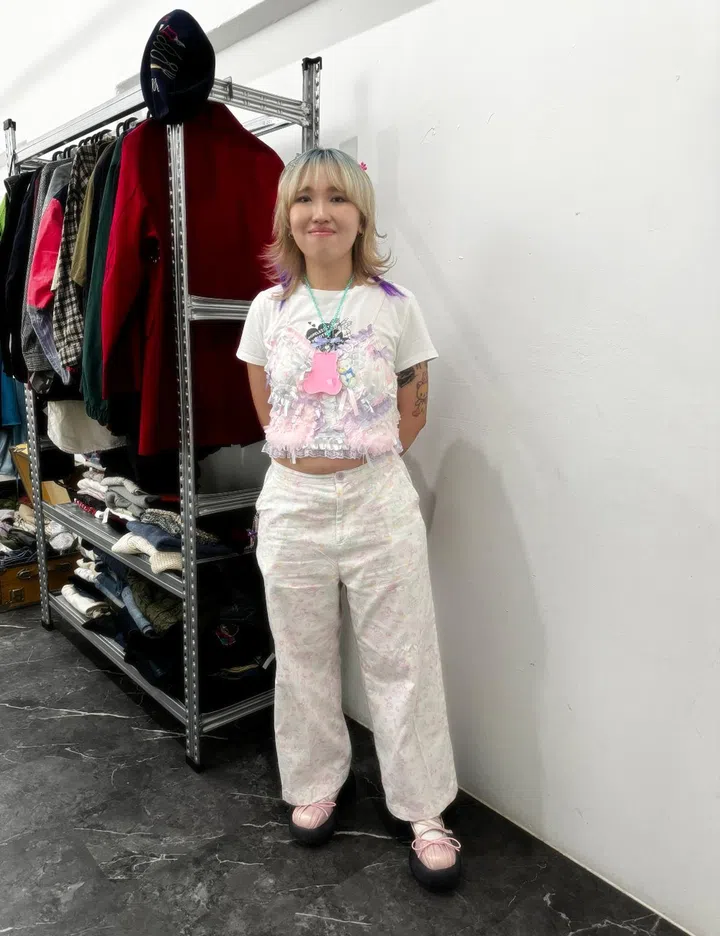 The fit: "My outfit is a blend of my two favourite genres, 'cult party' and 'fairy kei'. The camisole was a custom piece made by Gunifuni, a Tokyo-based designer, and my trousers were handmade. Accessories were gifted by a designer I really admire called Creepy Kitty."