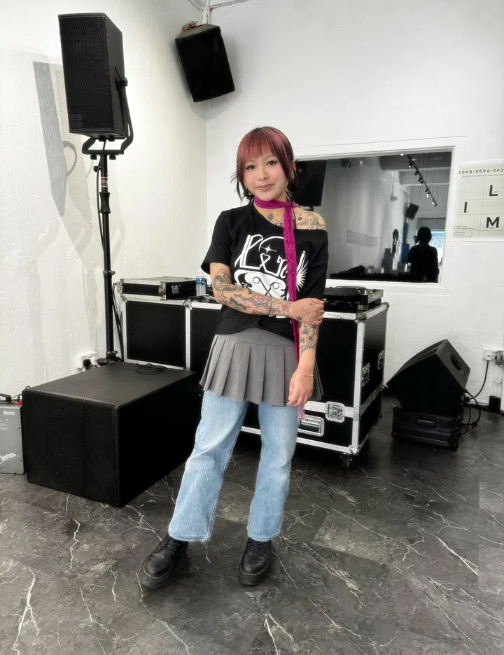 The fit: "The tee is the official LIM uniform for the event. I cut up the collars and made adjustments to make it more versatile and suitable for the rest of my outfit. The skirt is from Motel Rocks, jeans are thrifted Levi's, shoes are Dr. Martens' Jadons, and the scarf is from Taobao. Scarves have become a recent favourite of mine (no matter how warm it can get in Singapore)."