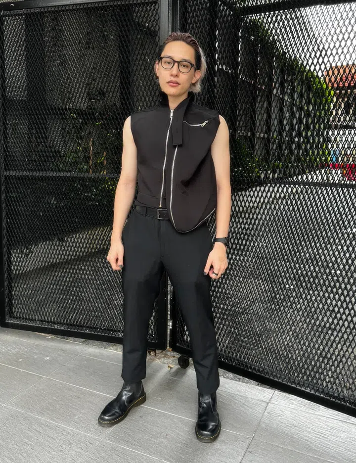 On his style journey thus far: "I feel like my style journey had multiple different steps. It started with being inspired by (YouTuber) Tim Dessaint, then I watched a lot of (baseball player) Christian Villanueva, and after that, I wanted to emulate Jackson Wang's look. Subsequently, I started dyeing my hair because I joined the hair and beauty industry, and then I decided to paint my nails after getting inspired by various Japanese hair stylists I follow on Instagram. Finally, I realised that as long as I'm happy, comfortable, and confident in what I'm wearing, it really doesn't matter what I wear. My style is relatively spontaneous and representative of the mood I am in that day, but I still adhere to some rules from Tim Dessaint despite slowly moving away from his style."
