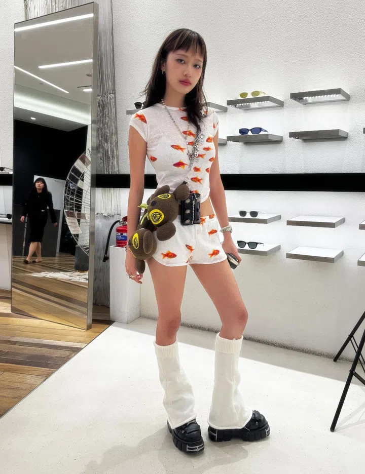 The inspiration behind her outfit: “I saw snippets of the Gentle Monster Jentle Salon collection, and it had a cute theme. My friends and I decided to go with a pyjama party look because there was a cute giant unicorn plushie in the middle of the store.”