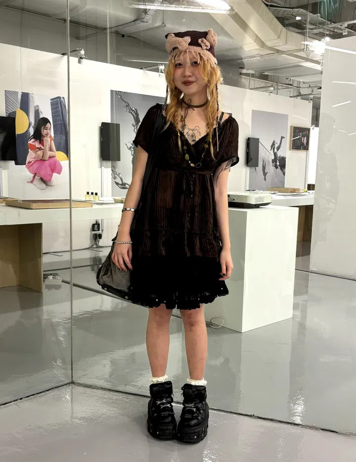 Her favourite way to accessorise: "Lately, I've been completely hooked on patterned tights for accessorising! It's fascinating how they can elevate a basic outfit, especially with the surge in abstract printed designs. They're almost like customisable Sims skins! I typically pair them with miniskirts and dresses."