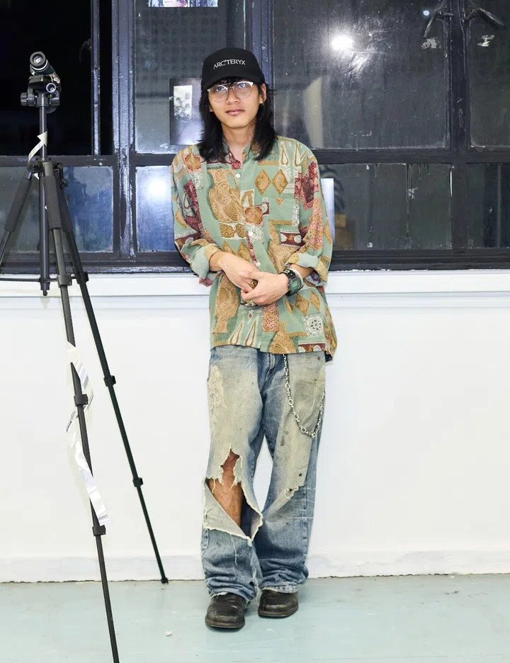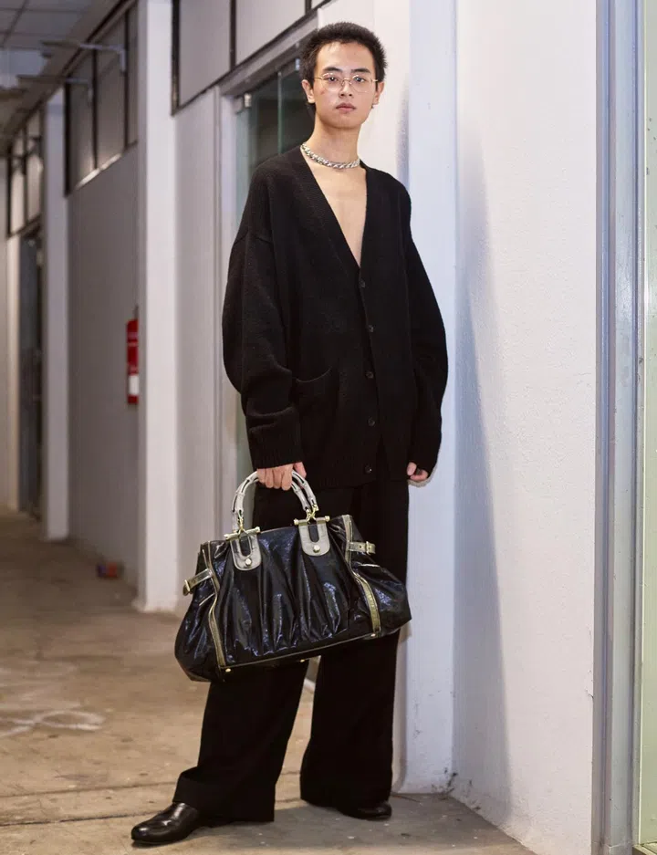 His fit: "My cardigan is from Izzue, and my pants are thrifted and altered by me. The shoes are from (Korean label) Josepht, and my necklace is from a closed second-hand store at Millenia Walk. The bag I’m carrying is a vintage Gucci piece that was gifted to me by a friend."