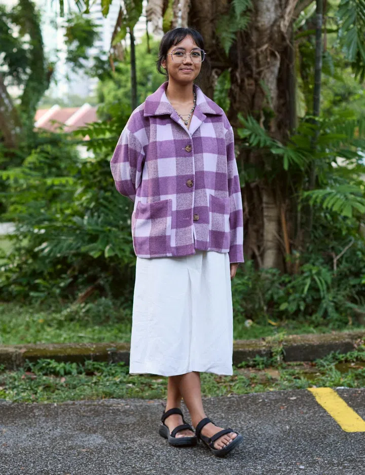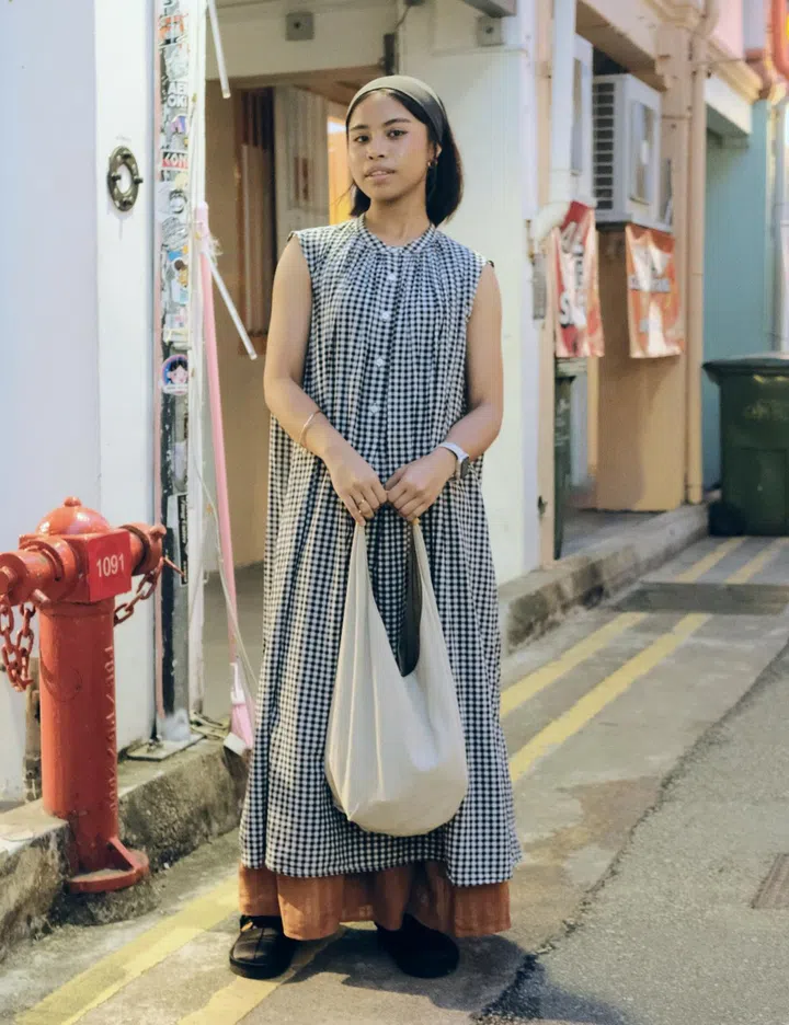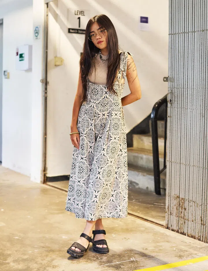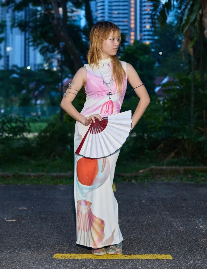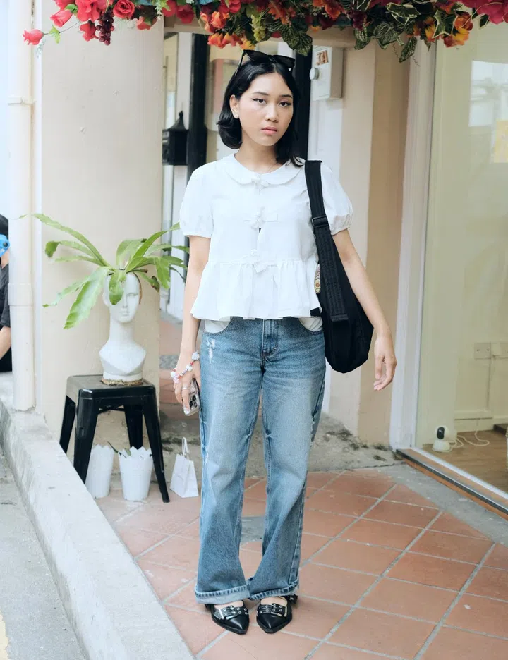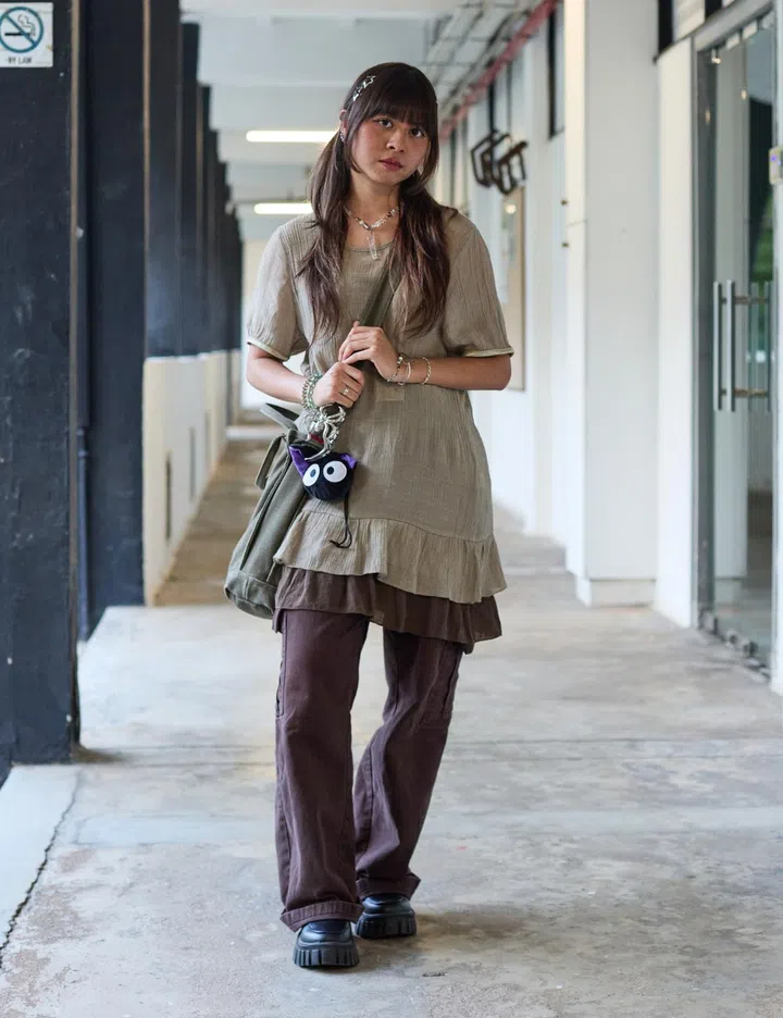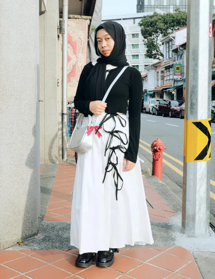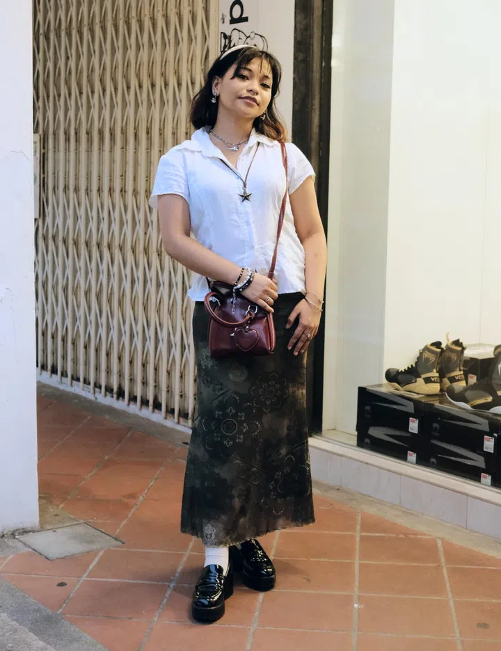 Her fit: "The top is from Re. drmg – a store at Haji Lane. The skirt is from Shein, and the shoes are from Taobao. The bag was gifted, and my accessories are all from Shopee and various stores in Bugis Street."
