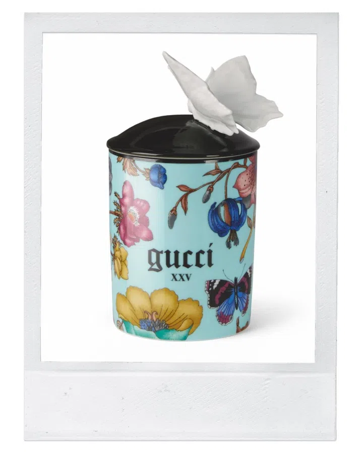 Light this candle and let the sweet and comforting scent of pink rose and Taif Damask rose permeate your home (it can burn for approximately 68 hours). The home scent is housed in a vessel made by Italian porcelain specialist Ginori and handpainted with the Gucci Flora pattern.