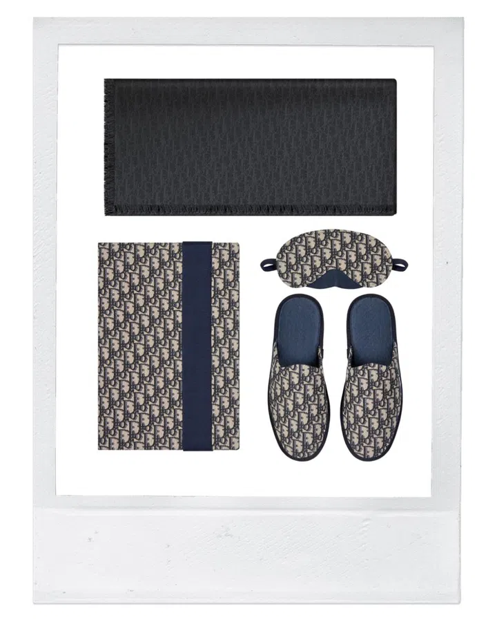 Dior's first homewear kit for men (it comprises a pochette, night mask, slipper in the Dior Oblique jacquard and silk and a cashmere and wool stole) is so chic, we don't mind nicking it from our better halves.