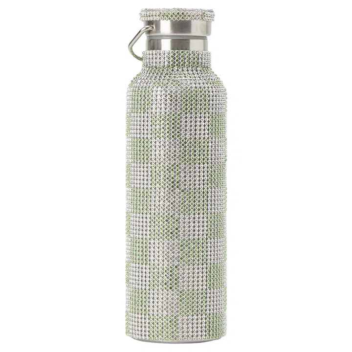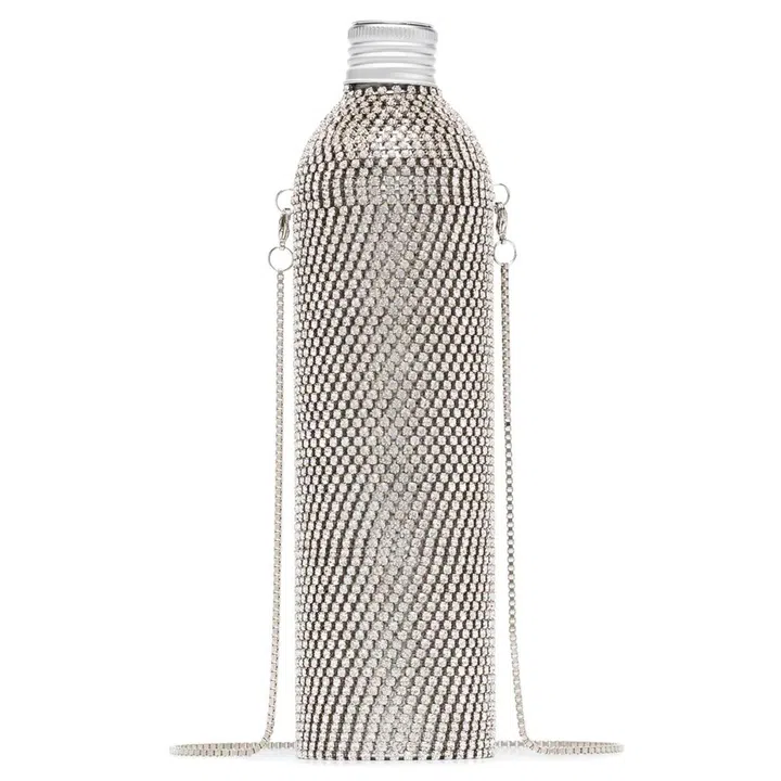 New York label Collina Strada adds a little glamour to the canteen bottle with her rhinestone-festooned bottle sleeve.