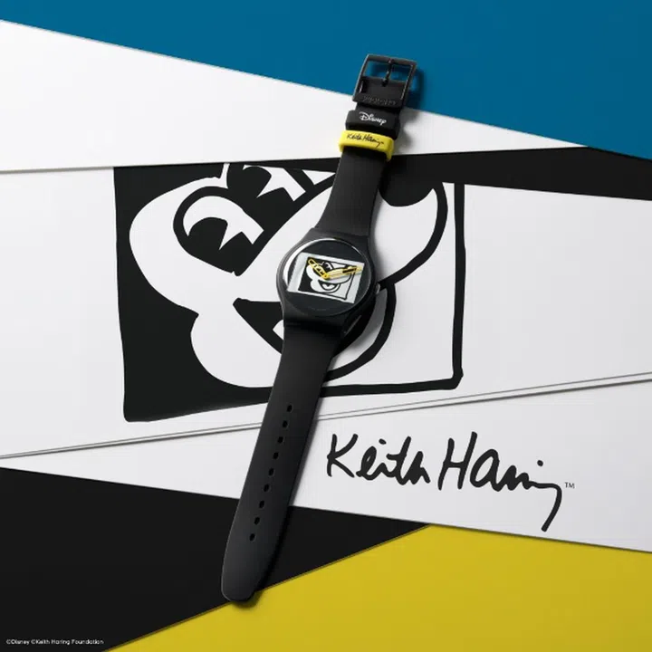 Swiss watch company Swatch has rolled out its latest range of the Disney Mickey Mouse x Keith Haring Collection ($149-$754) which spans three wristwatches and a Maxi wall clock in stores.
