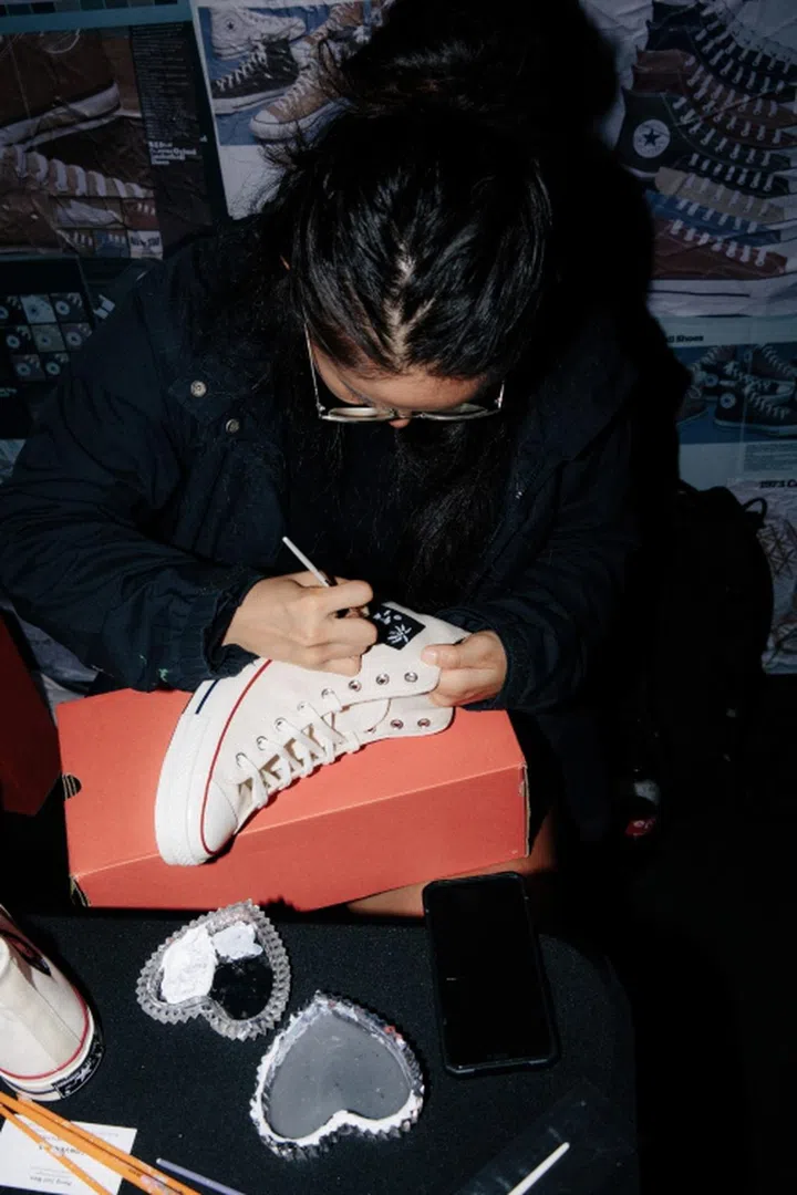 Lovage hand-painting custom Chuck 70s at Converse's Chuck 70 Pop-Up earlier this year in January.