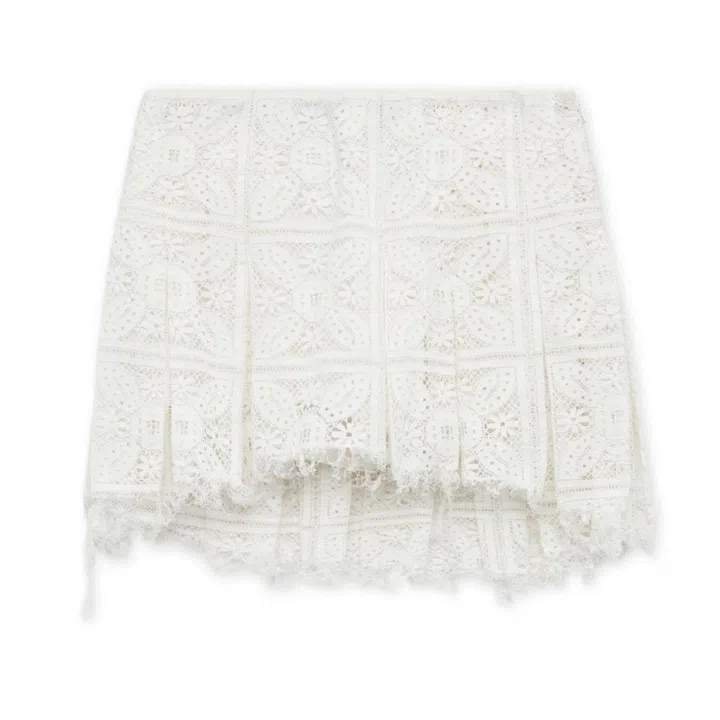This season, the cutesy factor goes into overdrive — and it’s not just about the tomato. The collection, known for its exuberant vintage-inspired prints and kaleidoscopic aesthetic, offers a mix-and-match wardrobe that radiates freedom and whimsy. Think compass and feather motifs, flowing silhouettes with lace-trimmed knits, and graphic prints inspired by Ibiza’s lush vegetation. Tomato branch-inspired charms, a rose-shaped bucket hat, and a bee-shaped raffia bag only add to the fun.