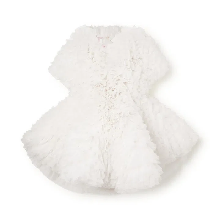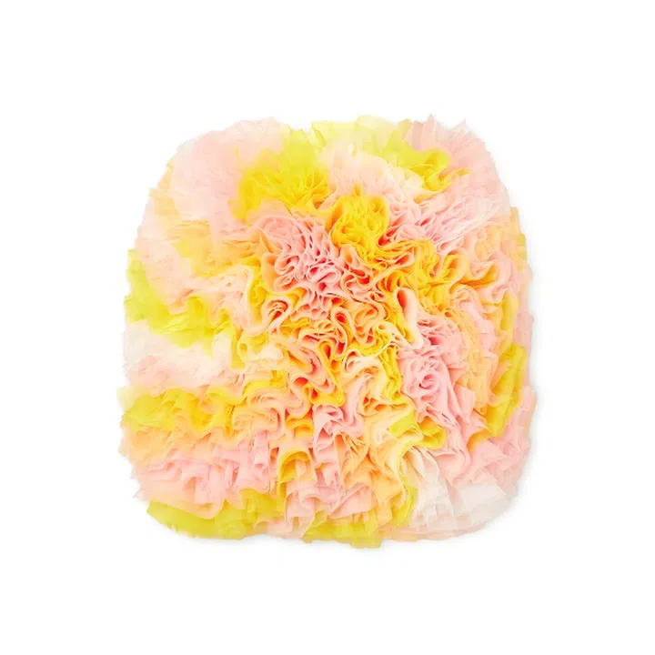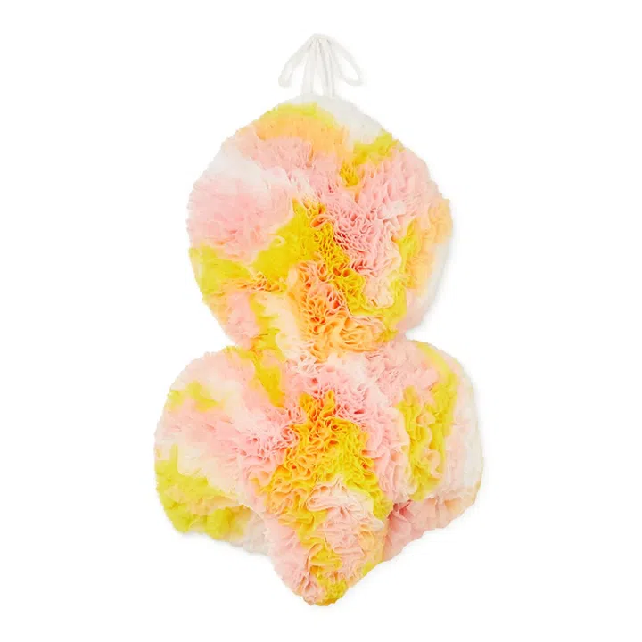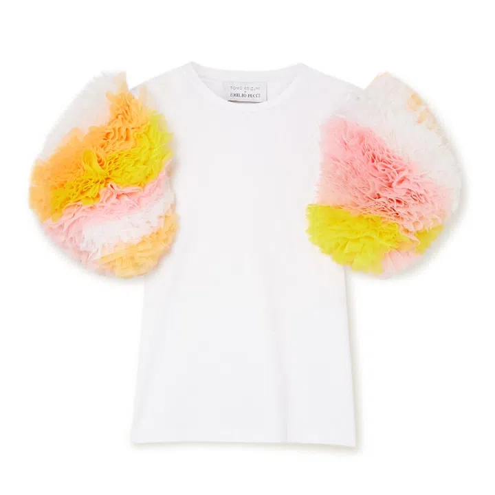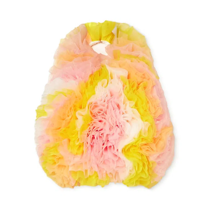The bubbly collection has just launched exclusively on Net-A-Porter for two weeks starting February 22. The outing sees Koizumi – who counts industry insiders like Lady Gaga, stylist Katie Grand and designer Giles Deacon as fans and has landed a spot in The Met's Camp: Notes on Fashion exhibition in 2019 – bringing to life Pucci's vibrant and two-dimensional Vetrate archival print as sculptural tulle confections.