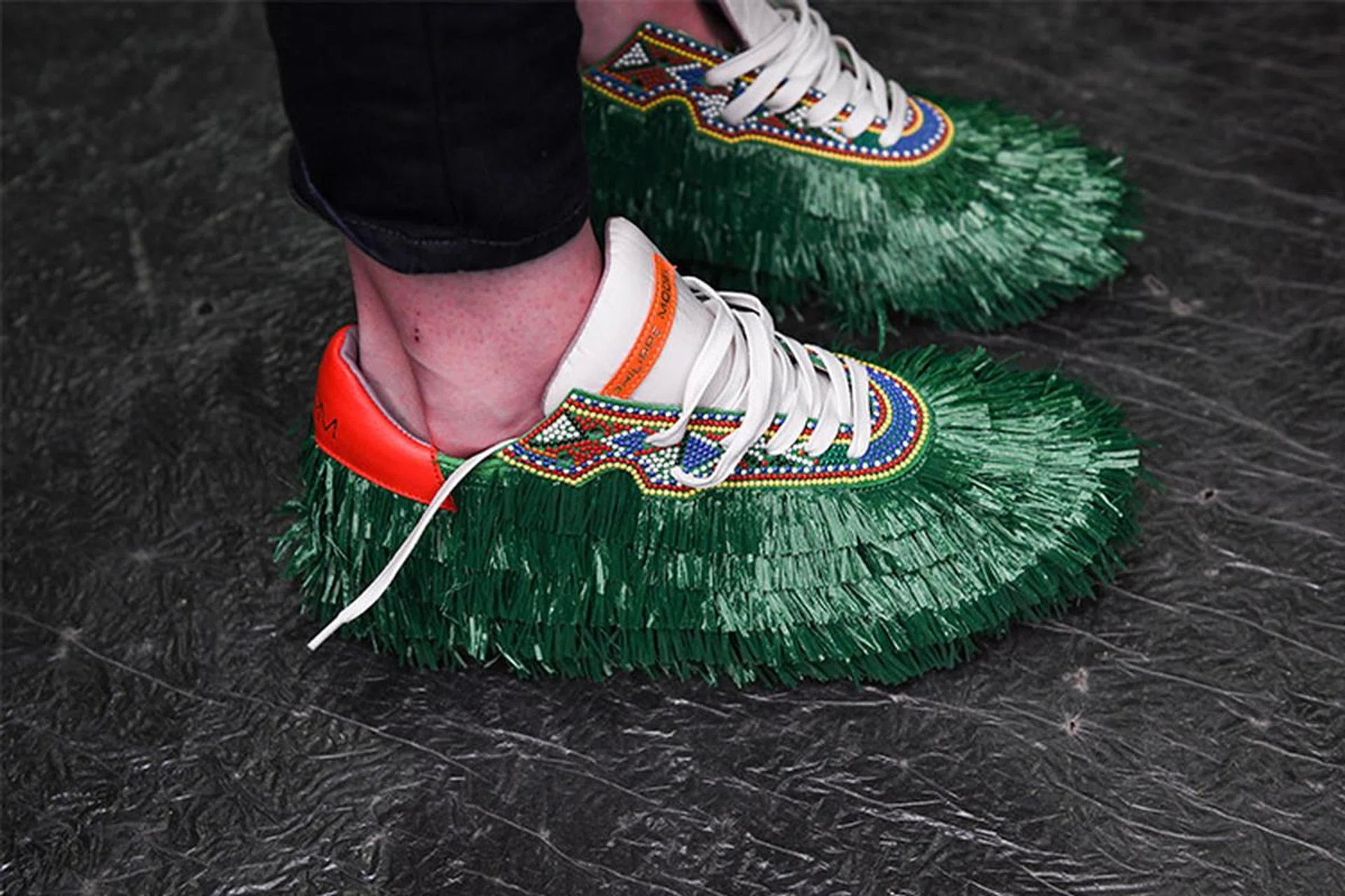 Italian fashion designer Stella Jean was inspired by the Olympics for this collection, so the sporty aesthetic definitely shines through. This pair of green sneakers, with its frills/fur/fringe (? reminds us of pom poms though), is a sure head-turner. We think it'd look good with a fitted pencil skirt.
