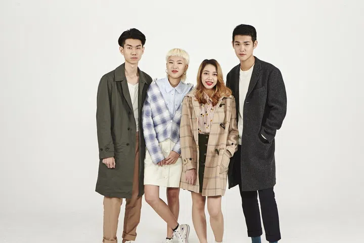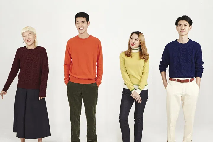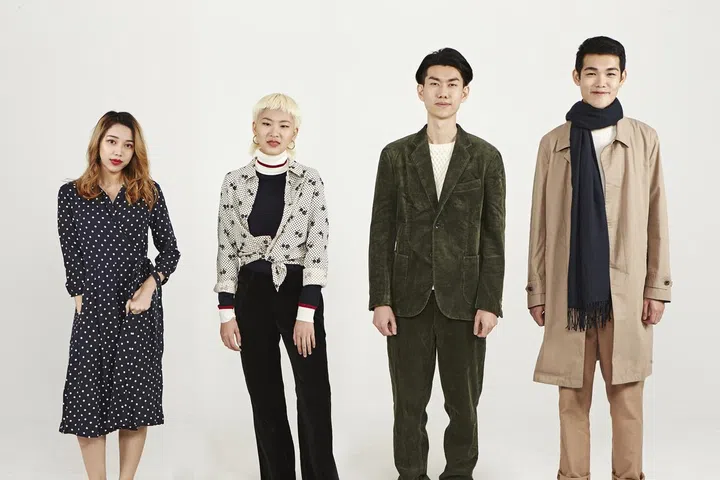 (From left) On Heng: Cotton twill trench coat, $199.90, long-sleeve Henley shirt, $29.90, and cotton pants, $59.90 On Cheah: ULD compact jacket, $99.90, cotton long-sleeve shirt, $49.90, and corduroy mini skirt, $59.90 On Kim: wool-blend duffle coat, $199.90, flannel shirt, $49.90, corduroy mini skirt, $59.90 On Tann: Wool-blend chesterfield coat, $199.90, cashmere sweater, $149.90, and wool-blend pants, $79.90