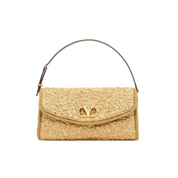 Your Valentino Garavani DeVain: For the textures-obsessed collector, might we suggest this cloque jacquard fabric iteration ($3,100)? This fabric is a masterclass in dimension; the raised, “puffed” effect of the jacquard mimics the organic surface of experimental stoneware, making the bag feel like a soft, metallic sculpture that has been fired to perfection.