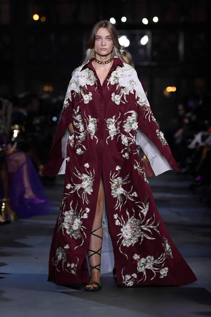Elsewhere, a floor-length tiger print coat was the spitting image of its 1967 predecessor, worn by German model Veruschka, and two floral dresses that followed each other on the runway were re-editions of those photographed by Chris von Wangenheim in 1971.