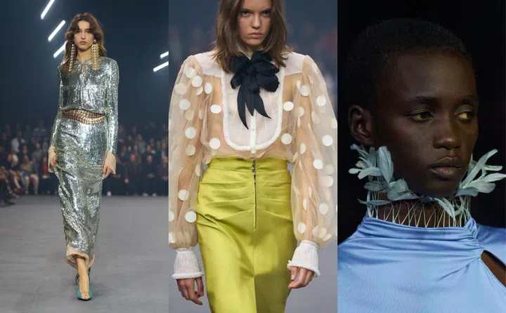 Then there were the accessories that bordered on sculpture: oversized baroque earrings, unapologetically bold sunglasses, and pendant necklaces so commanding they almost eclipsed the clothes themselves.