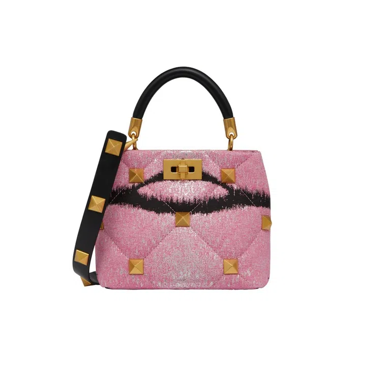 Chinese singer Cheng Xiao pairs her pretty-in-pink Valentino Tiger 1967 wardrobe with an equally adorable Valentino Garavani Loco shoulder bag.