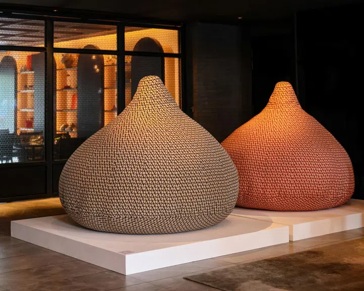 Since Sanpitak first coined the term "breast stupas" in 2001, the sculptures have appeared in innumerable iterations, sizes and materials. For this outing, a pair of sculptures titled Breast Stupas Valentino have been crafted in black and red respectively, wrapped in fabrics emblazoned with the maison's Toile Iconographe motif. Following the showing at the Havelock Road hotel, the works will be sold – with proceeds going to United Women Singapore, a fund that is dedicated to women’s empowerment and gender equality.