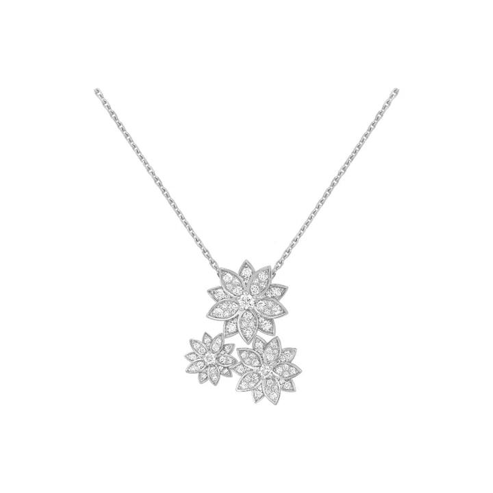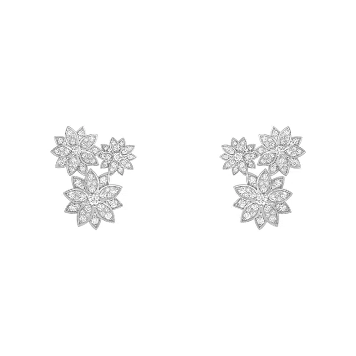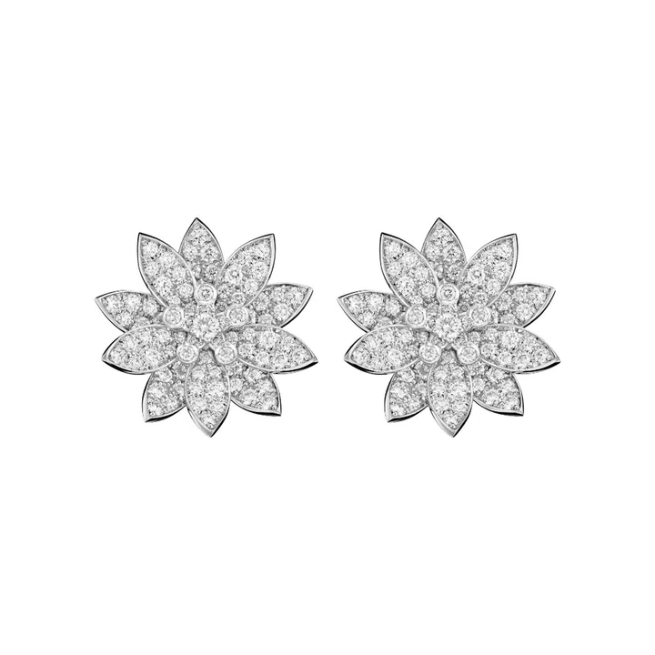 The Maison reveals enchanting new creations: a between-the-finger ring, a pendant, and a pair of earrings in white gold and diamonds as part of the Lotus line, where classic favourites inspired by the symbolic flower are reimagined.