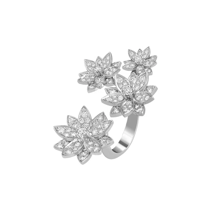 Lotus Between The Finger Ring 4 Flowers 18K white gold ring with diamonds