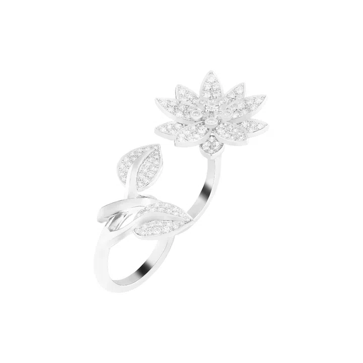 Lotus Between The Finger Ring 18K white gold ring with diamonds
