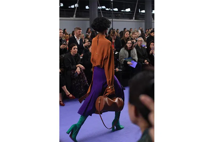 "If you’ve been to an Anya Hindmarch show, you’ll know that her sets are out of this world, and this year, the setting resembled a rocky terrain. Vetr, as written in the show notes, translates to “winter” in old Norse and was the key inspiration behind the collection, which explored the romanticised notions in contrast to darker motifs in Nordic folklore."