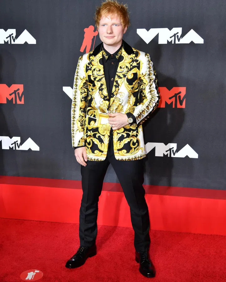 Other celebrities who made an entrance with gender-bending looks were rapper Lil Nas X who turned up in an off-shoulder tuxedo-slash-gown hybrid by Atelier Versace. Machine Gun Kelly was also in couture – dressed in a fiery sequinned number from the recent Venice Alta Satoria 2021 show.