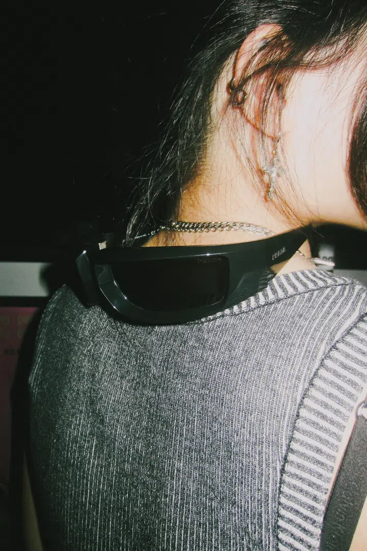 The first time sporty, retro-futuristic wraparound shades went from being primarily the stuff of dads and cyclists to being recognised as cool was in the ’90s. (Thank Wesley Snipes’ character in Blade; Brad Pitt’s in Fight Club; and the era’s ravers for that.) Fast-forward to today – when the decade’s aesthetic is fuelling both Gen Zs and some of the most influential fashion designers and style stars around (hey Kim and Bella!) – and is it any surprise that they’re the accessory to be seen with on dancefloors again?