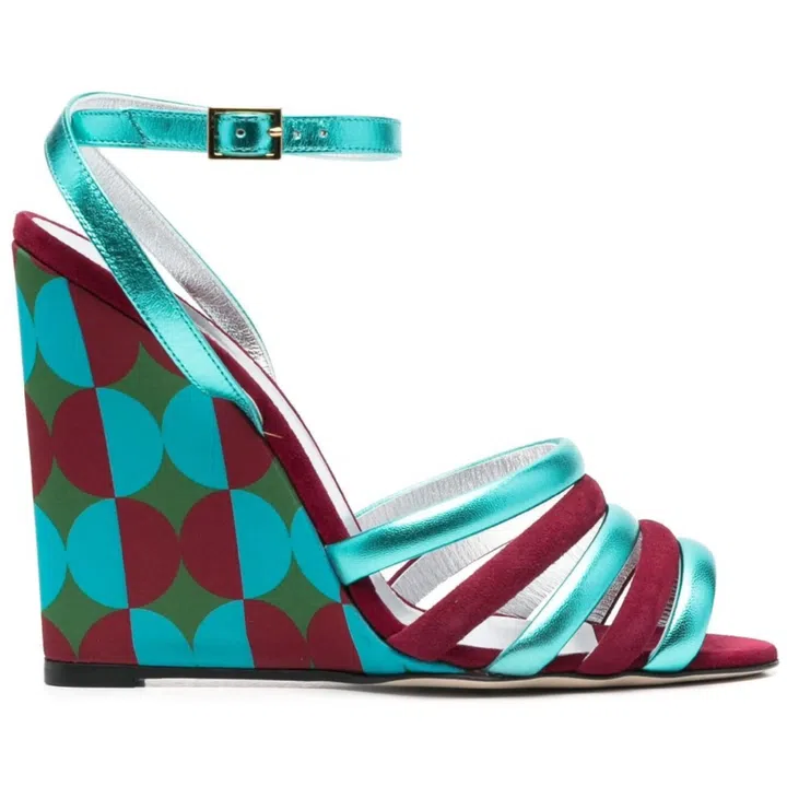 A wild night only calls for an even wilder shoe of choice, like this retro riot of colour wedge sandals that throws it back to the ‘80s.