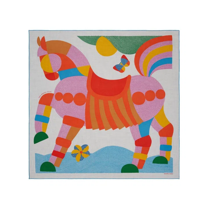 Hermes unveiled the theme of its Spring/Summer 2023 Objects collection as 'Astonishment' and it's perfectly illustrated in this silk shawl with its whimsical horse print.