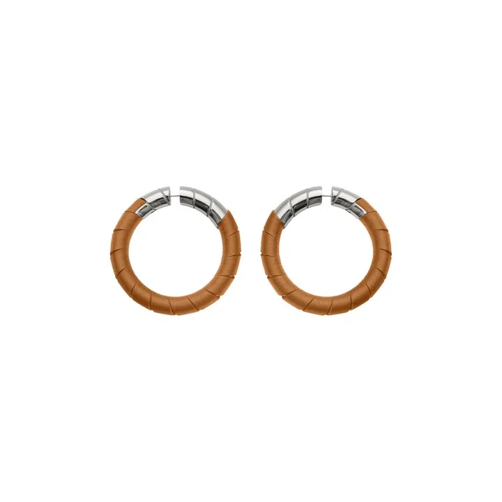 This pair of silver hoops wrapped in a tanned calfskin leather harks back to the brand's expertise in all things leather.