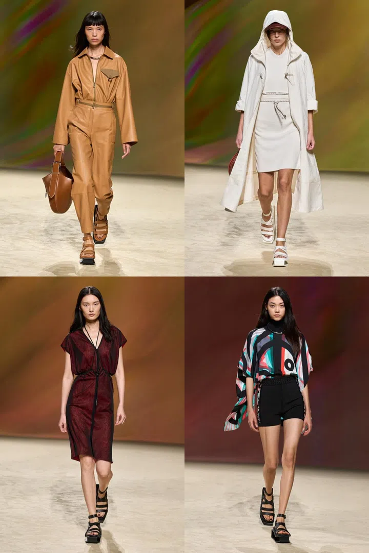The great outdoors served as inspiration for Hermes' Spring/Summer 2023 show. Picture sand dunes that serve as a canvas for the changing colours of dawn to dusk – a parallel to the pieces that make up the collection. Creative Director for womenswear Nadege Vanhee-Cybulski ventured into the concept of adaptability and travelling, specifically how it's changed in a post-pandemic world. With the idea of a "rave in the desert", Vanhee-Cybulski created a collection that balanced both refinement and utilitarianism.