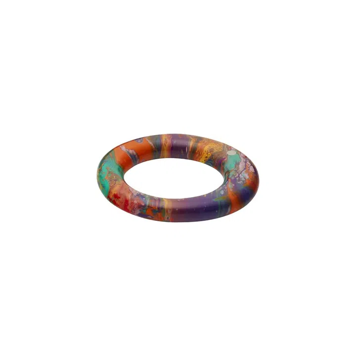 There's something quite enchanting about the kaleidoscopic design of this lacquered wood bracelet that is said to be inspired by horse jumping hoops.