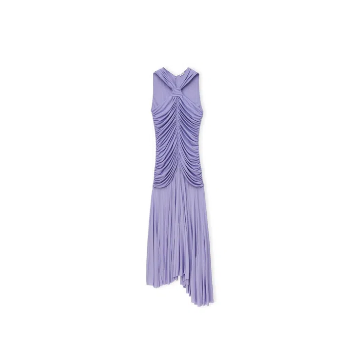 The ruched bust and godet pleat skirt on the halter neck drape dress is giving major goddess energy.