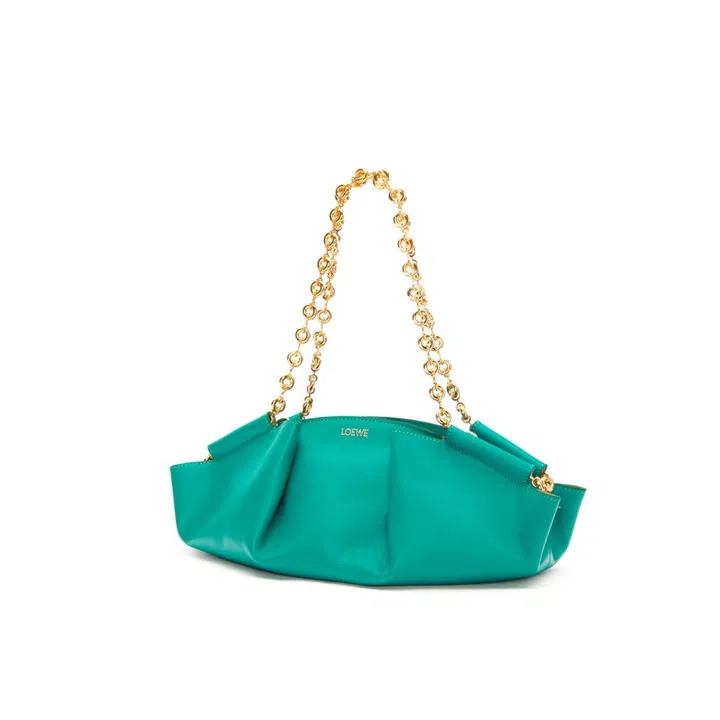 Making its debut this season, the Paseo is an east-west shoulder bag with a pleated leather design that is inspired by Loewe's bags from the Aire Series in the mid-2000s. Available in either an S or XL version, the bag comes with a choice of leather handles or fun "doughnut" metal chains.
