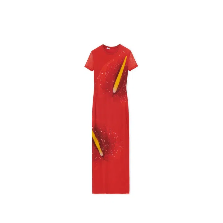 Jonathan Anderson's oeuvre at Loewe has been dominated by a strong Surrealism influence of late – and the Spring/Summer 2023 collection shows that is not changing anytime soon. For this season, the designer's attention is focused on a marvel of the botanical world: the odd but wonderful anthurium flower, which Anderson describes as a "product of nature that looks like an object of design."