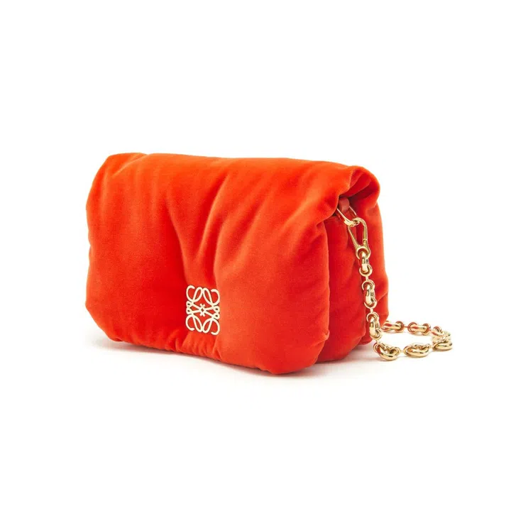 In his Fall/Winter 2022 collection, Anderson presented a supple leather version of the Goya Puffer. This time around, the bag welcomes a more luxurious finish in plush velvet.