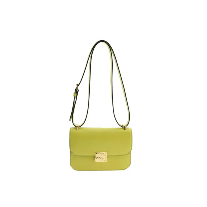 Though the collection had a generally muted colour palette, this sprightly lime green bag is definitely ideal for those looking to add some zest to their wardrobe. Note the 'Miu Miu' logo push-lock closure that can be easily “separated” as you open the clasp (first time for the brand).