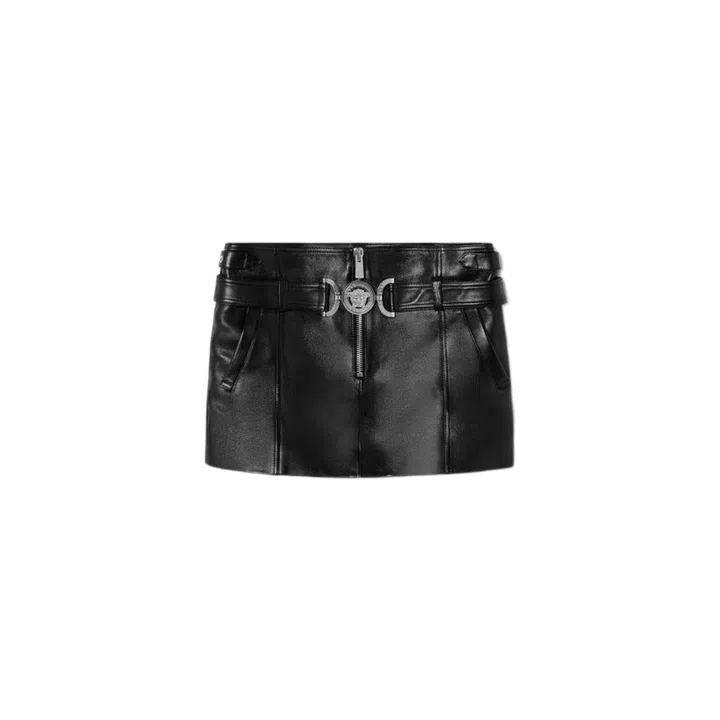 Party like a rockstar in this mini skirt which comes a leather and metal belt and hardware featuring the Medusa '95 emblem.