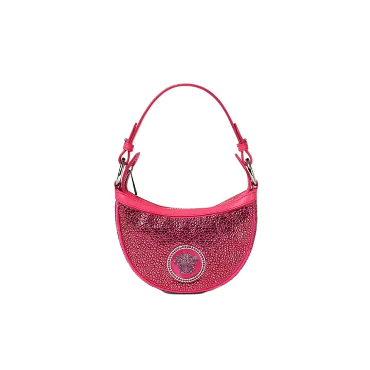 Flirty dresses with cut-outs and Mary Janes with chunky platforms set the tone for the dark and provocative theme of the collection, as do the fringe leather jackets and bags and tactile pieces like a spike-textured sweater. Balancing things off are low-cut dresses and satin cargo pants in Versace's standard colours such as bright pink, Prince-inspired purple and acid yellow. If you're in the mood to unleash your inner rock diva, peep our curation of buys from the collection below.