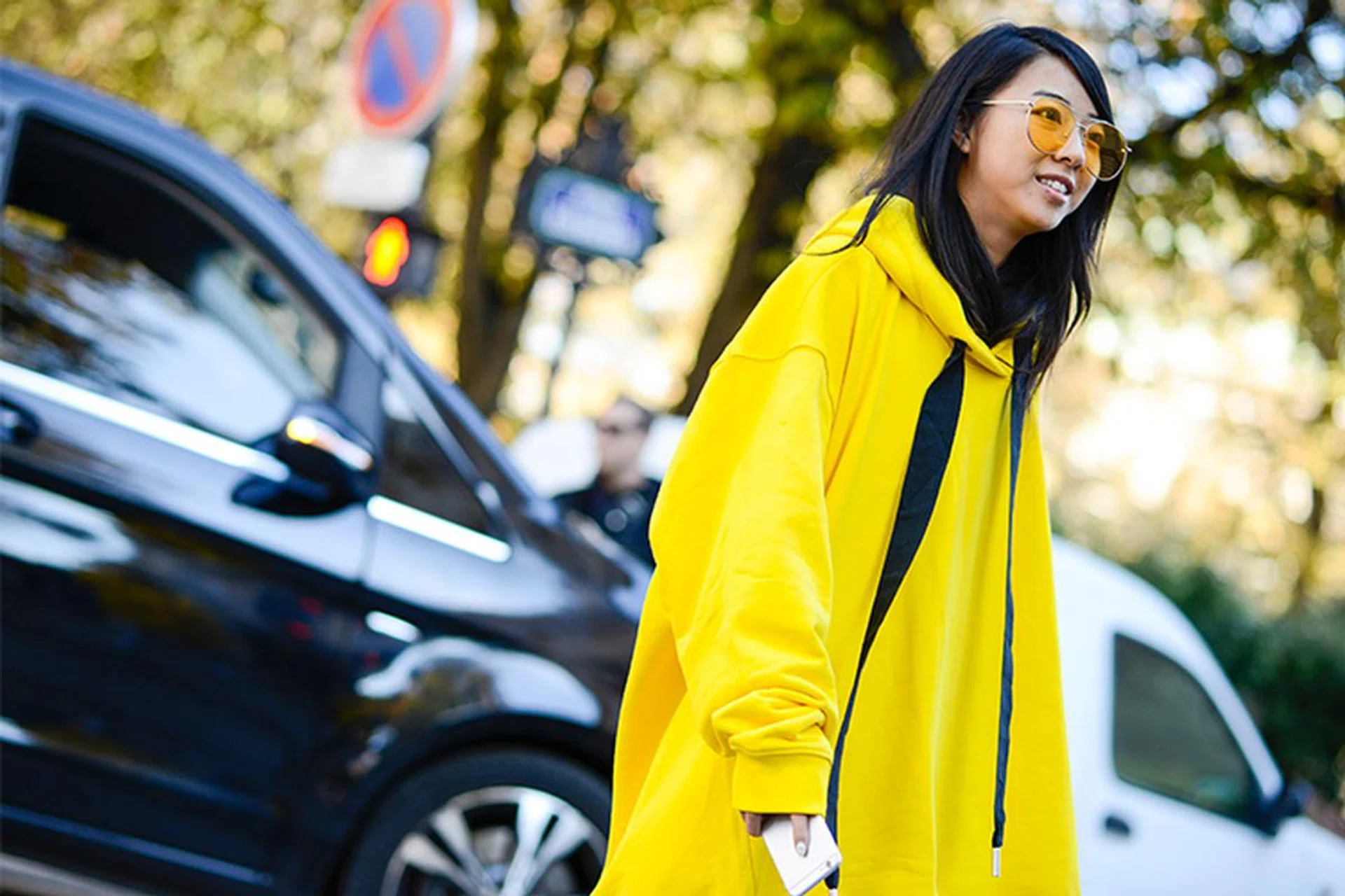Off the runway, fashion showgoers, too, were not afraid to make yellow the statement colour in their looks - whether via an oversized hoodie or wide-legged pants. How they toned down its intensity: By pairing them with monochrome pieces or attention-grabbing jewellery.