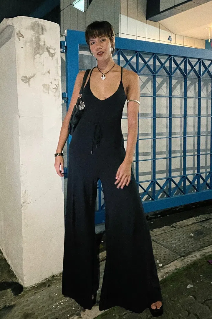 What she is wearing: Thrifted Diesel jumpsuit; thrifted shoulder bag and jewellery; and Mango shoes
