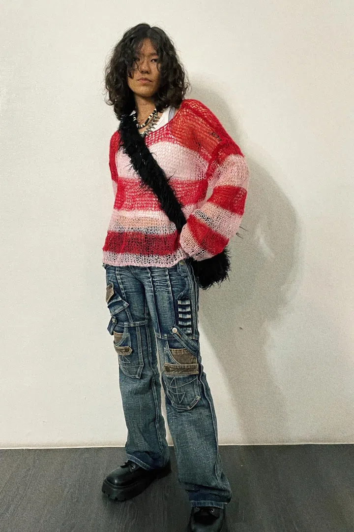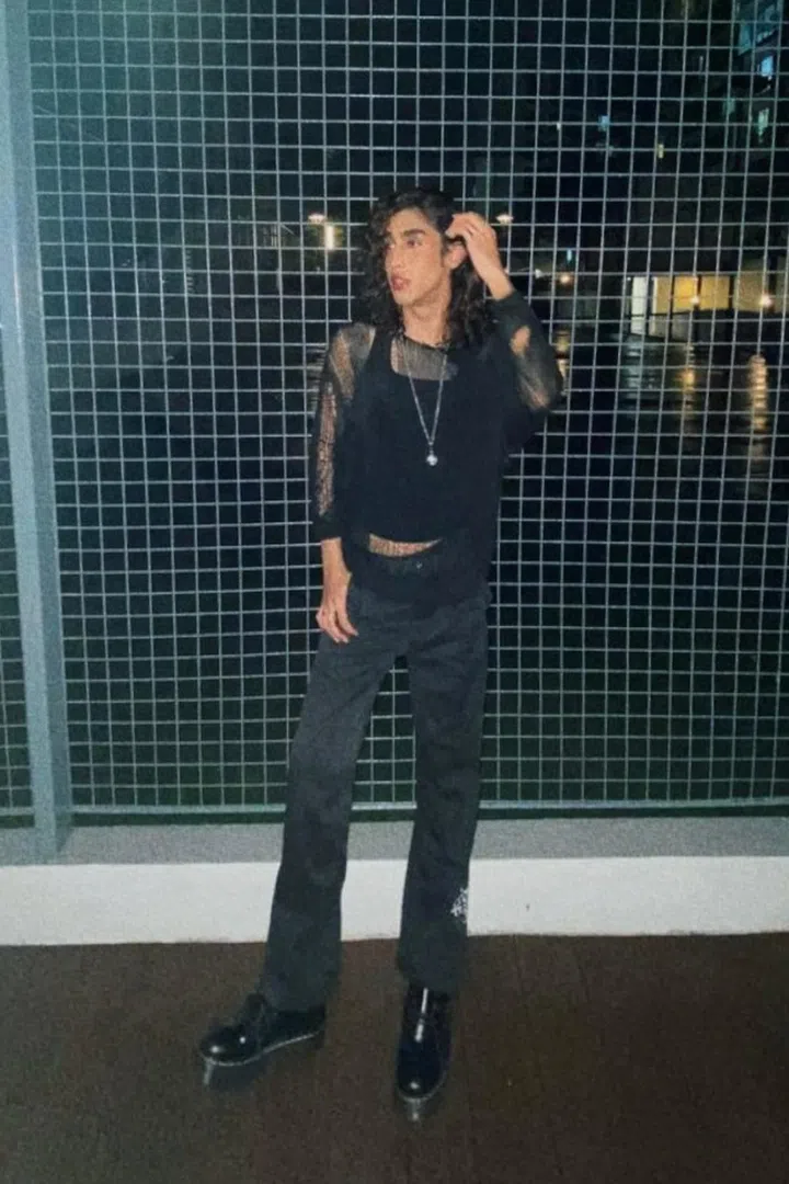 What he is wearing: Knit top from Taobao that he DIY-ed; thrifted jeans; belt from his dad; gifted Vivienne Westwood necklace; jewellery that is handed down from his parents or gifted; and Doc Martens boots from Carousell