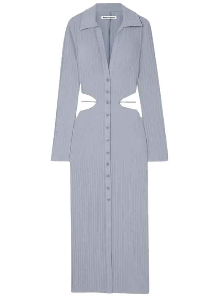 Working from home and looking for the perfect business-casual look? This Reformation dress is just the piece for you. The top looks like a smart cardigan (perfect for Zoom call meetings) but the sultry cutout detail that shows off your curves says you’re ready for Happy Hour with your girlfriends.