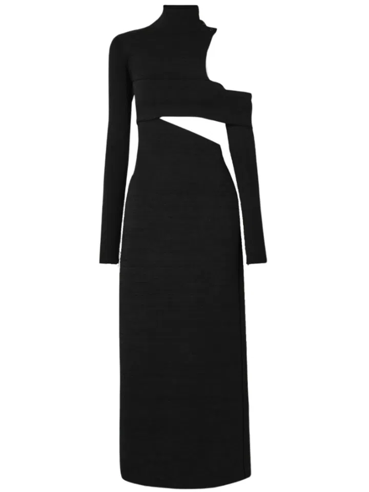 If cleavage-revealing dresses are not quite your style, then try this turtleneck version from Proenza Schouler featuring a one-shoulder cutout with a little slit by the side of the waist.