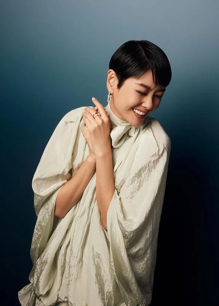 It’s all in the details for Sheila Sim. While her dreamy, sculptural outfit did most of the talking, she let the jewels whisper—stacking up on rose gold and diamonds from Tiffany & Co., including the HardWear link earrings, T1 rings, and the Tiffany Knot Ring.