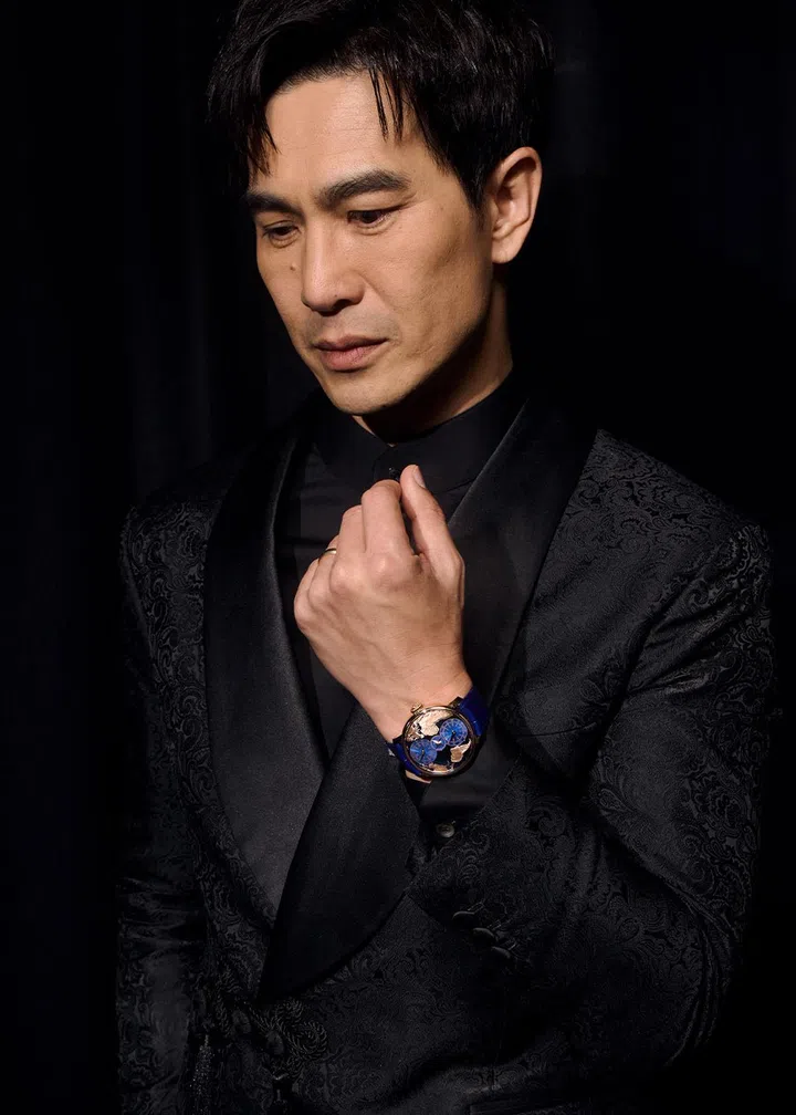 Pierre Png kept it simple, but let his wrist do the talking. For the third year running, he showed up in Jacob & Co., but this time with The World Is Yours Dual Time Zone. Bold and refined, the rose gold timepiece features twin sub-dials and a domed sapphire crystal that catches the light just right.