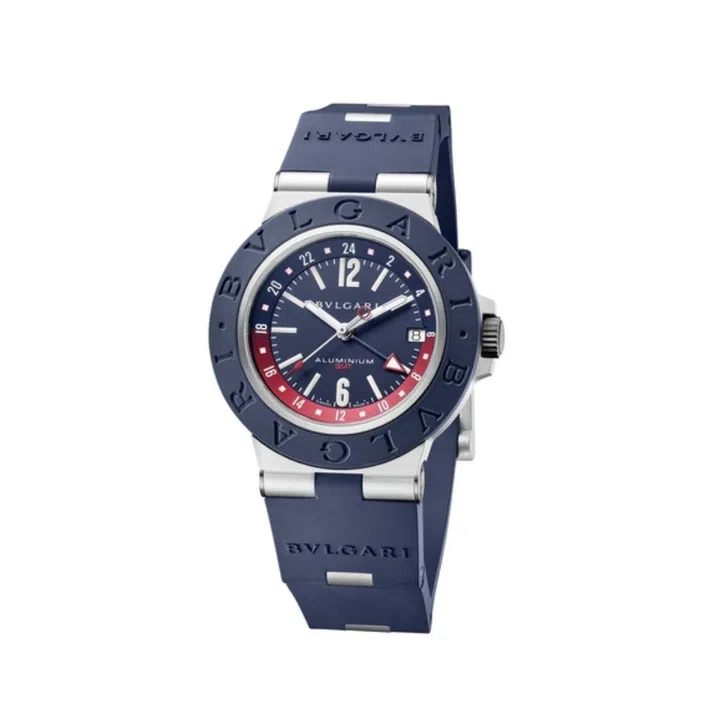 Launched in 1998 as the world’s first luxury watch made of aluminium and topped with a rubber bezel, the Bulgari Aluminium is an extension of the Bulgari Bulgari family, with its double logo inscription. A dual time zone watch in sporty blue and red, the Bulgari Aluminium GMT is designed to be a cheerer-upper in more ways than one. Aside from its vibrant aesthetic, the 40mm watch’s second time zone complication is meant to remind its wearer that the days of travel will (hopefully) soon be upon us again.