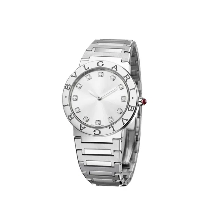 For those who prefer something a lot shinier, the Bulgari Bulgari Silver model has a cool, all-silver palette with a dash of red, courtesy of the rubellite cabochon in its crown. Available only in 33mm, the quartz timepiece features a steel case and a silver-toned dial set with 12 diamond hour markers.