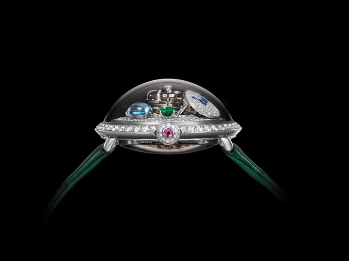 Even in the world of high jewellery watches, where sparkly showstoppers are par for the course, it’s not every day that you see large, rounded gemstones placed on a watch dial.